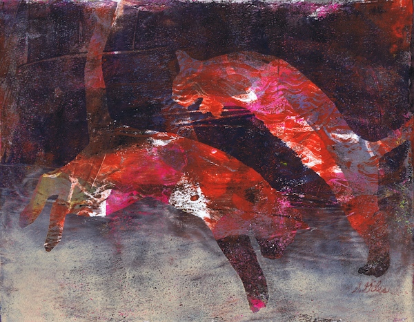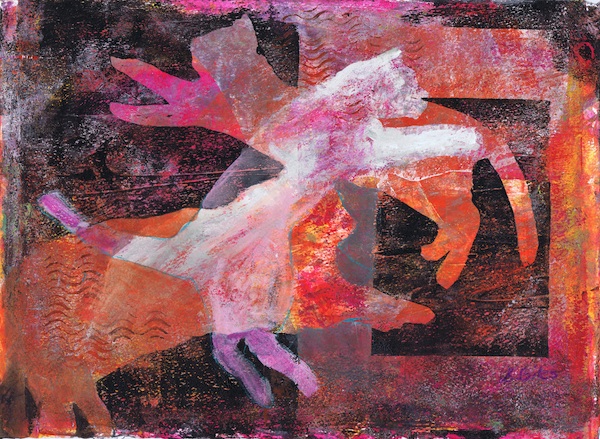 Honorable Mention Award in the Action/Motion Challenge Category for “Cat Dance” (acrylic monotype / painting)