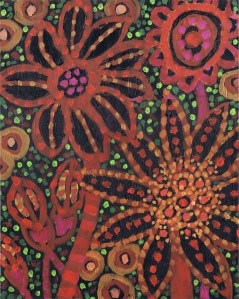 I’ve also ventured into abstract florals. I haven’t found any examples of floral art done by native Australian but the subject is something that calls to me. Here are two examples, both done on black backgrounds:
