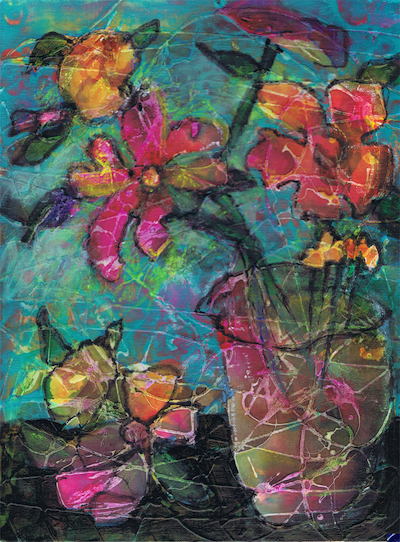 Since before the May 2017 workshop that I taught, I’ve been using Yupo or canvas instead of watercolor paper to create mixed media.