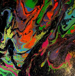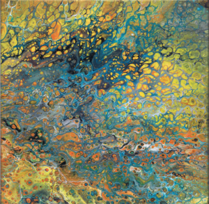 Linda and I are “pouring buddies” and together we host “Acrylic Night” on the first Friday of each month at IAA’s gallery in Irving. This exhibit is results of our exploration of acrylic pouring (also called fluid painting.) Acrylic pouring is a fascinating process developed recently that creates unpredictable compositions. Pouring refers to paint application using fluid paints poured directly on the canvas or paper instead of using a brush or pen. The paints (usually acrylic) are diluted with a medium to a more fluid consistency and the poured paint is manipulated to create cells and other patterns. Brochure for the exhibit: IAA2018PouringMadnessExhibitBrochure