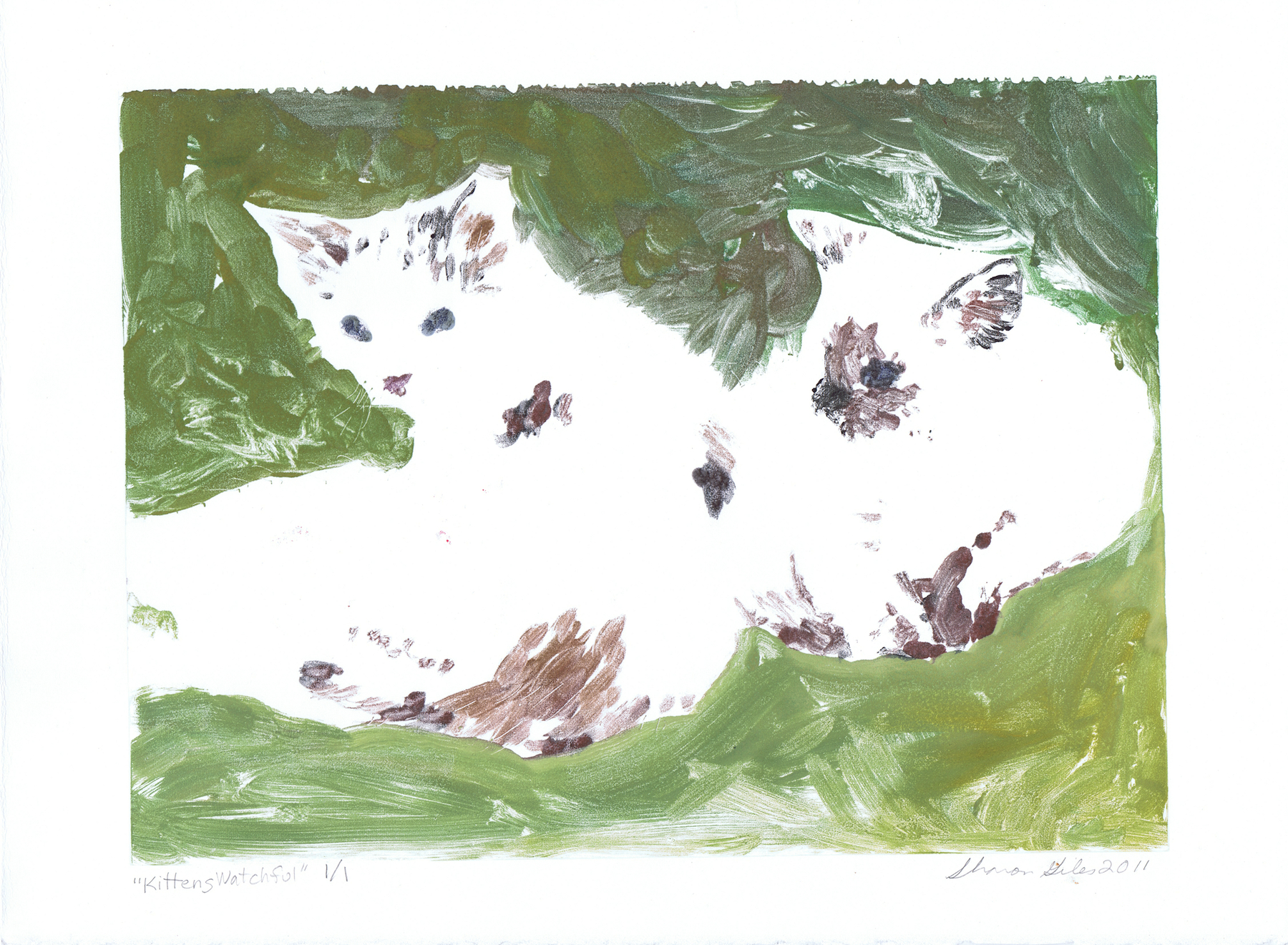 • Apr. 2012: First in Graphics, Pastels, 3D at the Trinity Arts Guild Members Juried Show for the monoprint “Kittens, Watchful”KittensWatchful1800